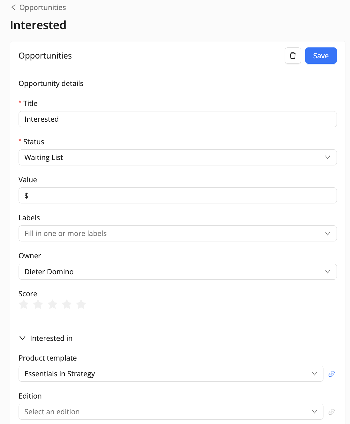 Value: Assign a projected financial value to the opportunity.
