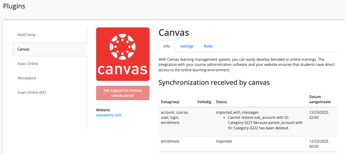 After setting up the Eduframe/Canvas connection, you can configure the Canvas plugin.