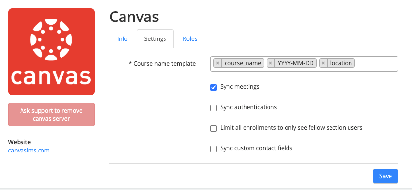 Next to the general information you can also do a hard sync or you can define the course names and configure teacher roles.