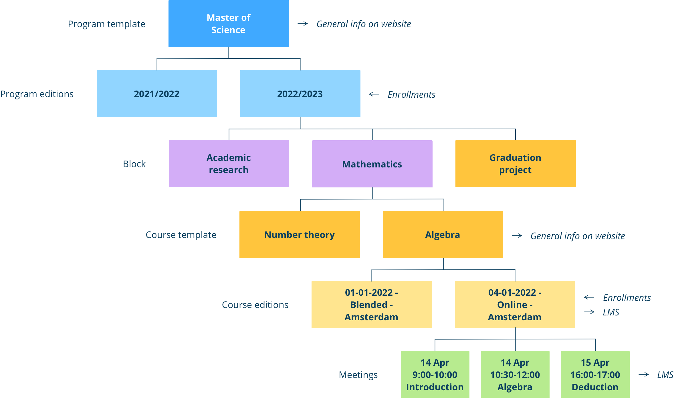 - A block cannot contain course editions. The course editions can be set on the program edition and personal program.