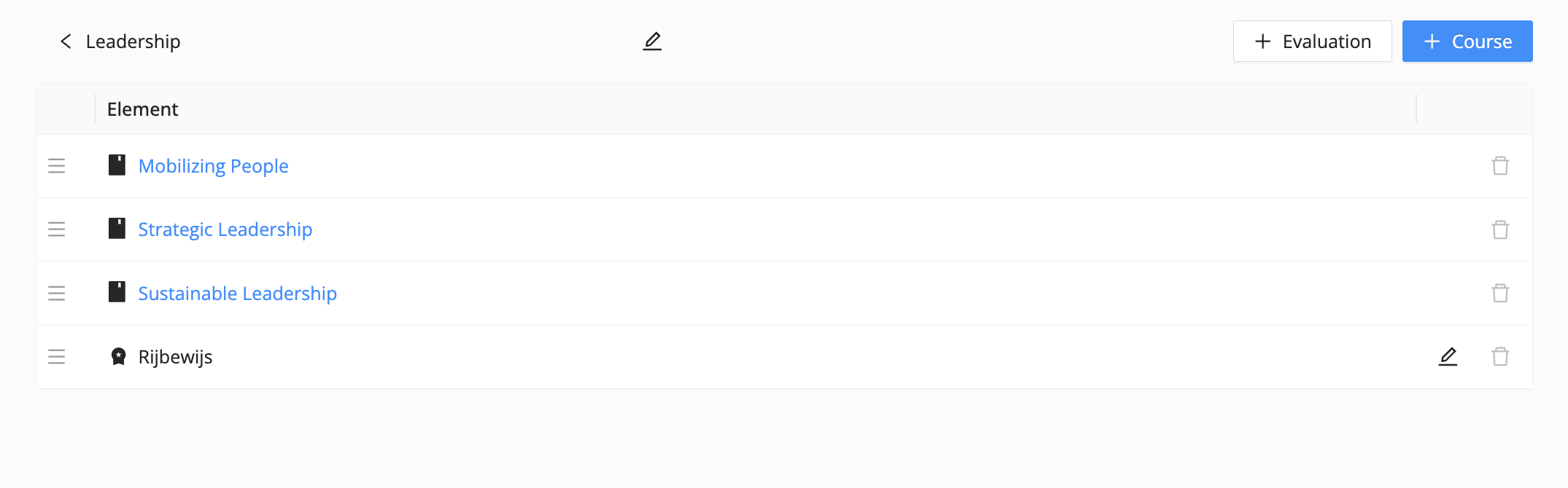 Evaluations: You can add an Evaluation element to a block to award a grade or certificate for completing that specific group of courses.