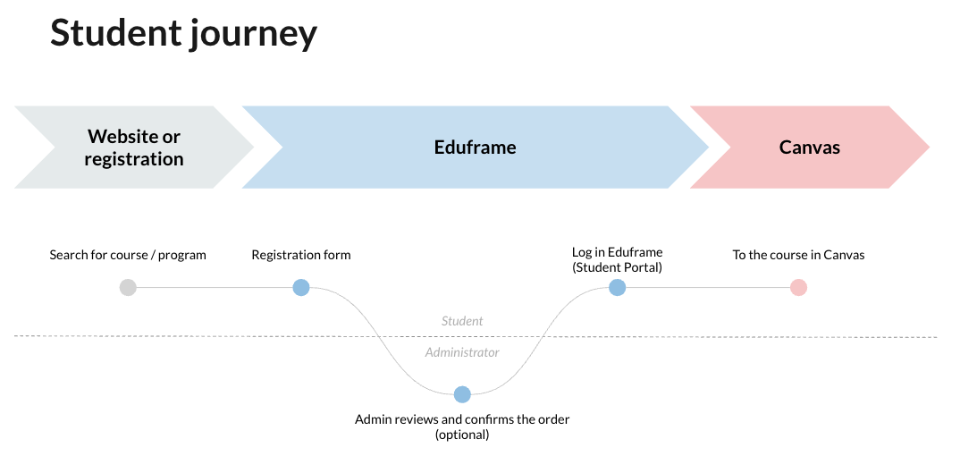 - How does the participant (student) journey look with Eduframe&Canvas?
